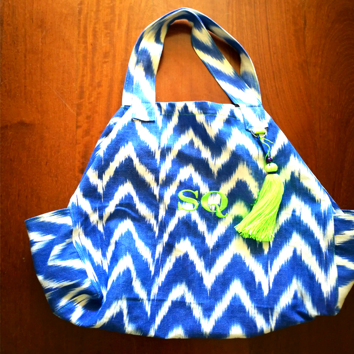 Bolsa de Playa en tela de lenguas mallorquinas , tejidas a mano en telares de la isla.