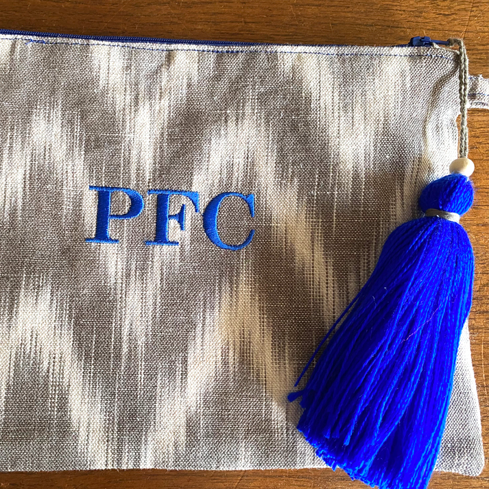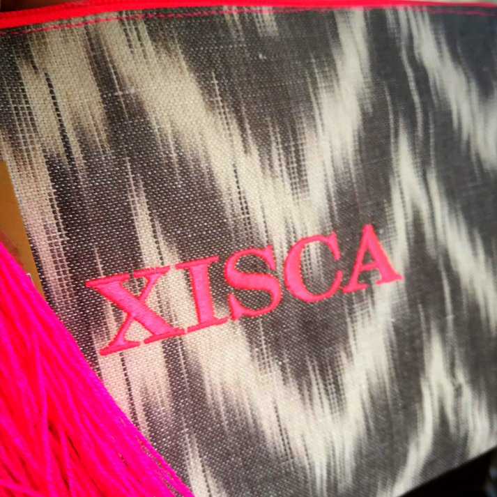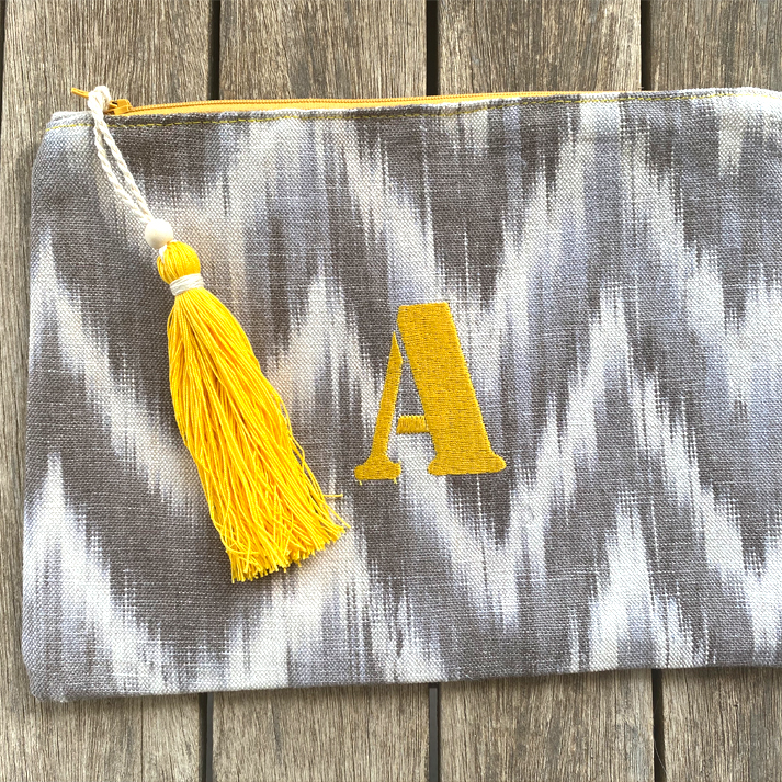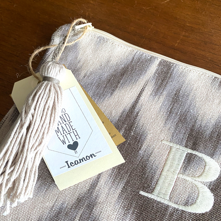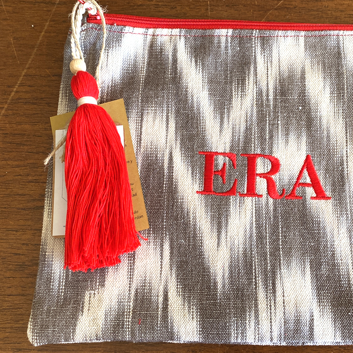 Bolsa de Mano o Neceser en tela de lenguas mallorquinas, tejidas a mano en telares de la isla.