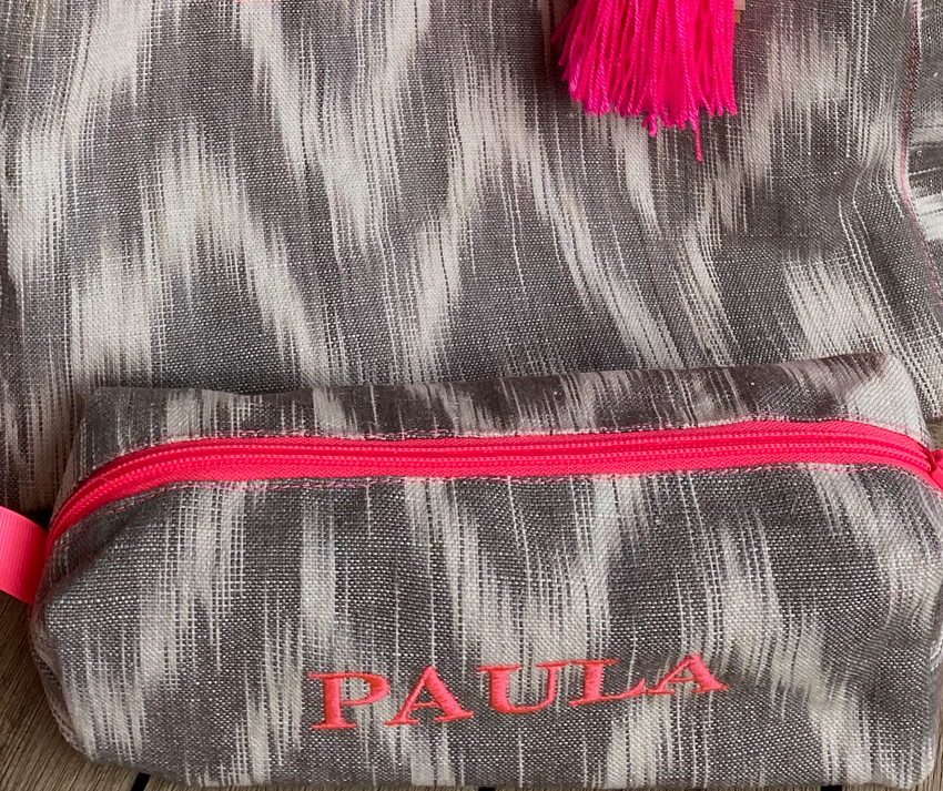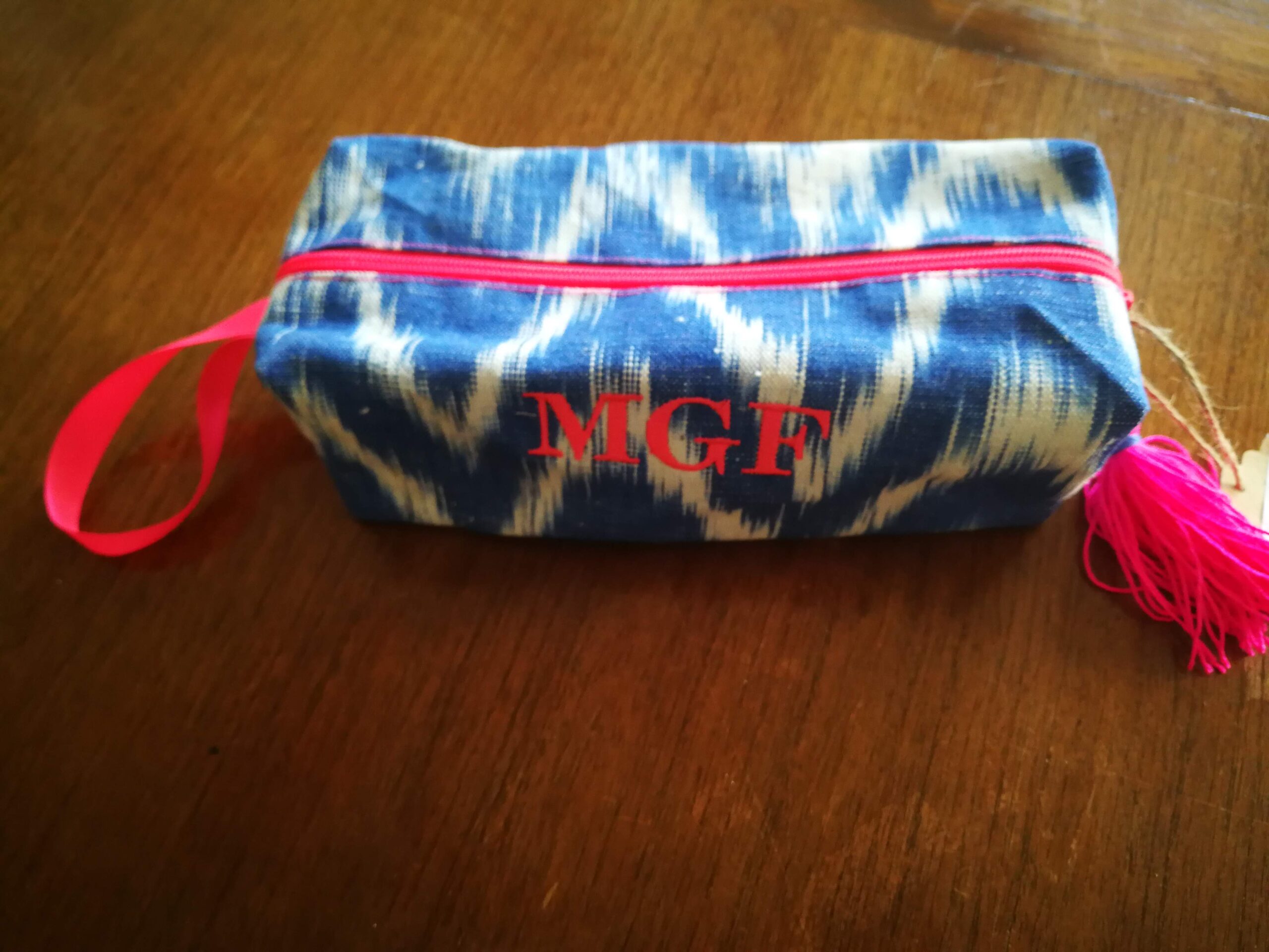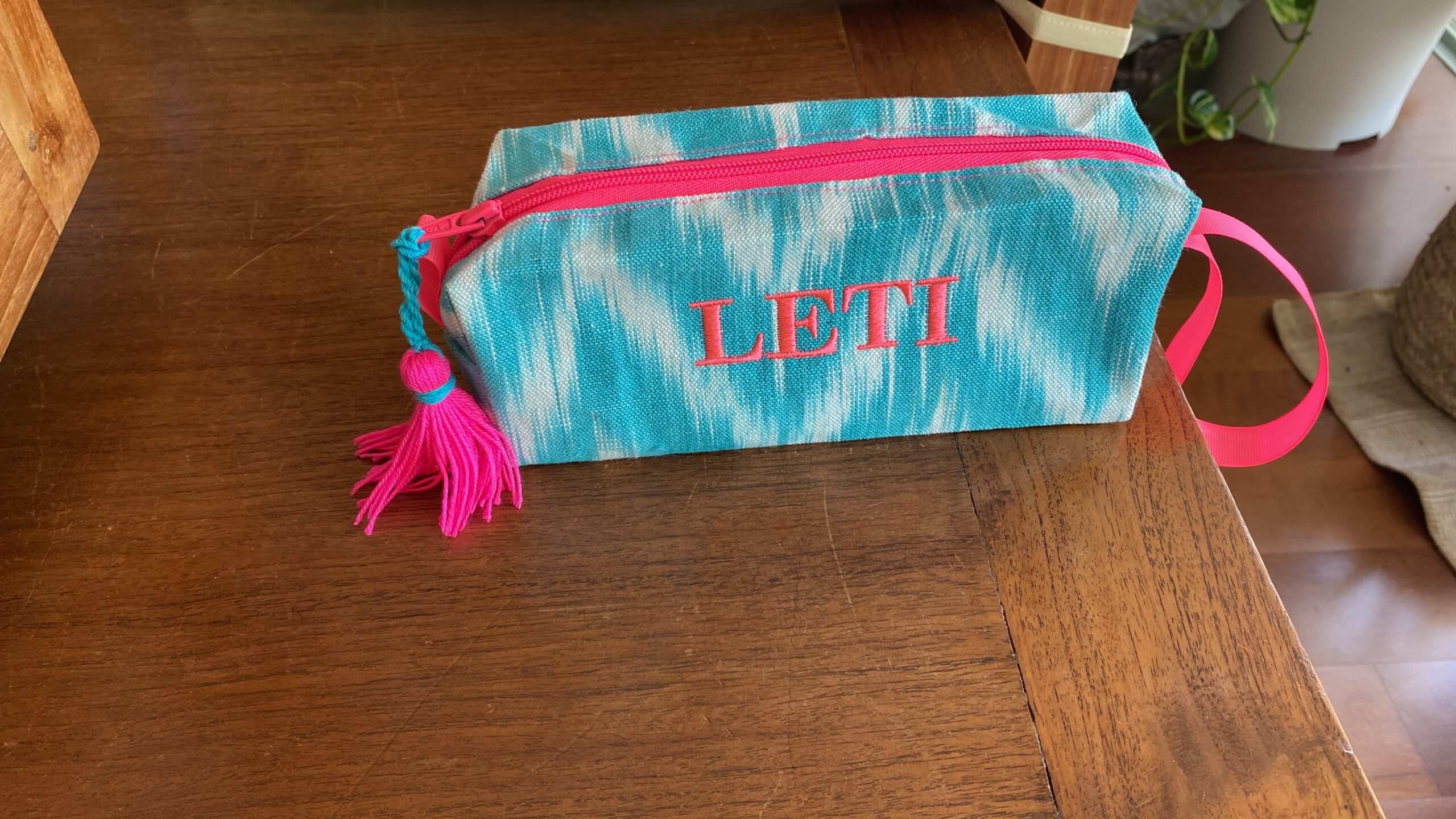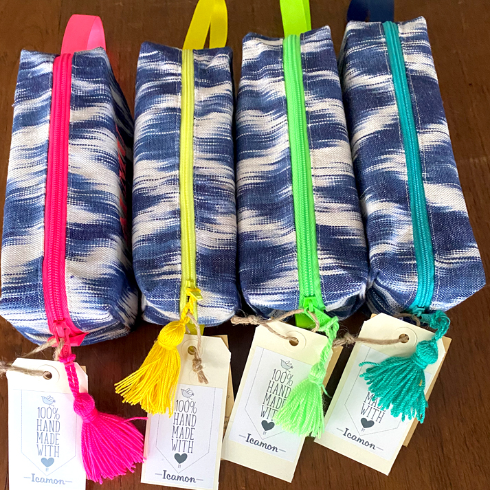 Estuche en tela de lenguas mallorquinas, tejidas a mano en telares de la isla. Ideal para guardar bolis y lápices o maquillaje.