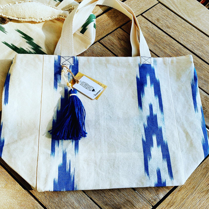 SHOPPINGBAG en tela de lenguas mallorquinas, tejidas a mano en telares de la isla.