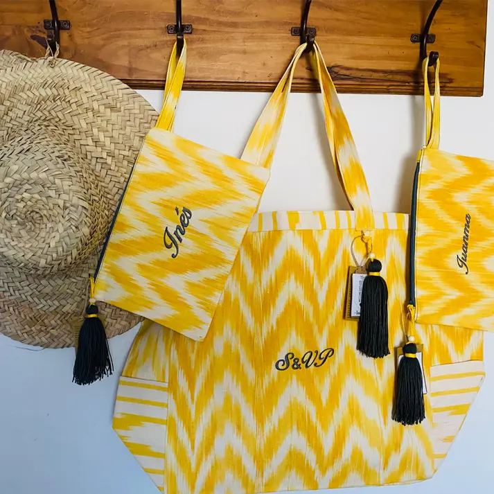 Conjunto amarillo personalizado con Bolsa de Playa y 2 Neceseres a conjunto