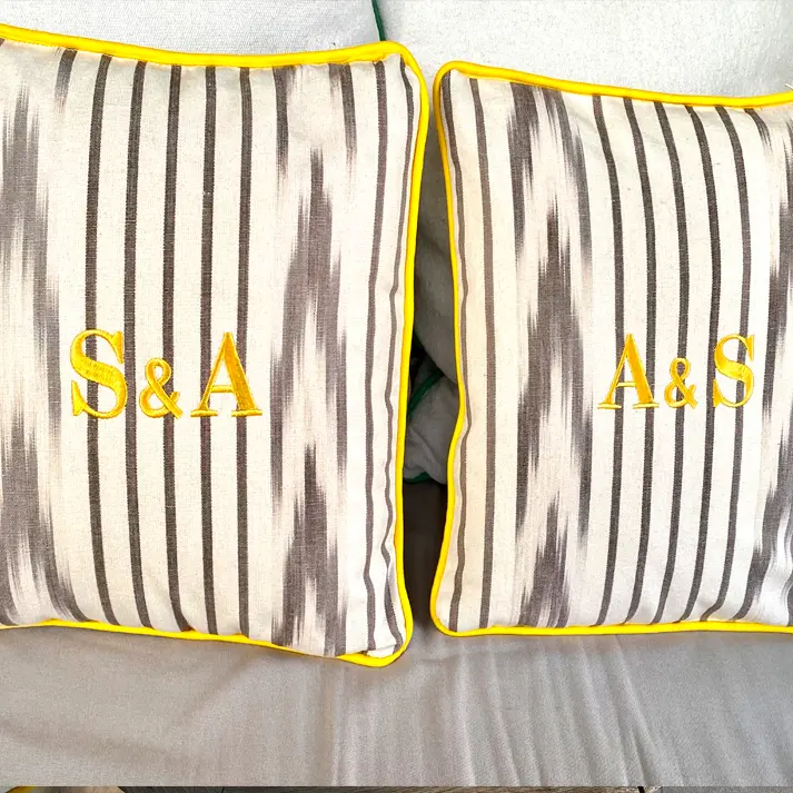 Neceseres, bolsas de playa, capazos, cojines o toallas de playa todo a conjunto bordador con nombre o iniciales para los dos miembros de la pareja.